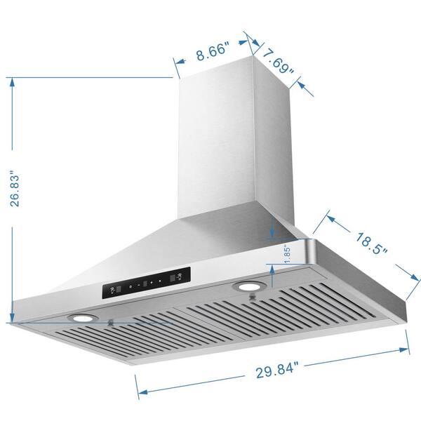 30 in. 294 CFM Ducted Wall Mounted Range Hood in Stainless Steel, LED Screen Finger Touch Control, 6-Speed Control