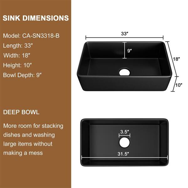 33 in. Farmhouse/Apron-Front Single Bowl Matte Black Fireclay Kitchen Sink with Bottom Grid and Strainer Drain