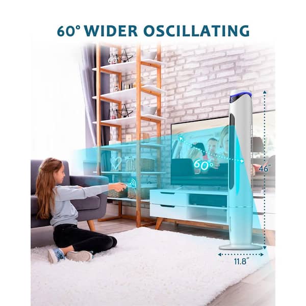 46 in. 3 fan speeds Portable Oscillating Evaporative Air Cooler Tower Fan in White with LED display, Night Light, Remote
