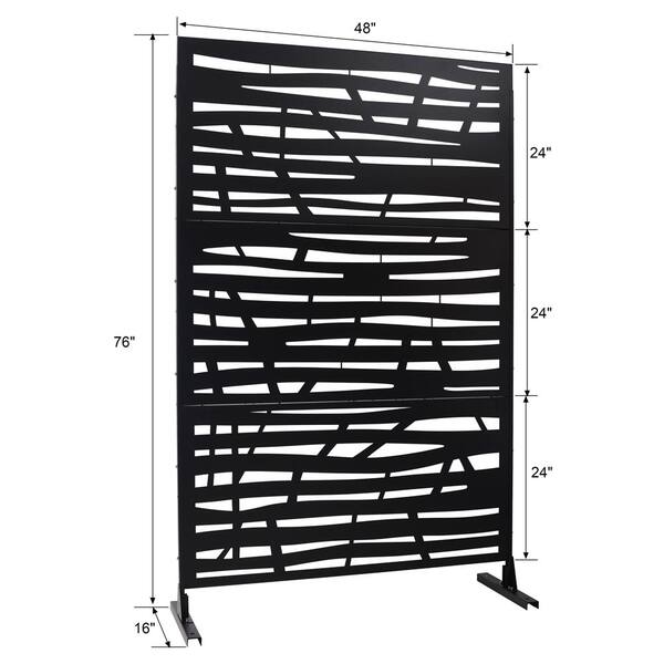 6.3 ft. x 4 ft. Black Outdoor Steel Decorative Privacy Screen, Indoor Metal Privacy Fence Panel