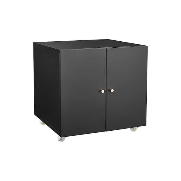 Black 23.6 in. H Office Storage Cabinet, Metal Mobile Printer Stand with Adjustable Shelf