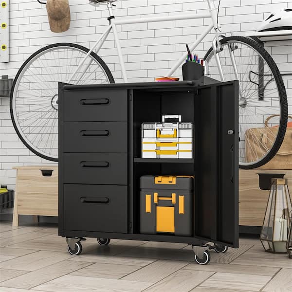 Black 35 in. H Metal Office Storage Cabinet Steel Mobile Tool Storage Cabinet with Wheels