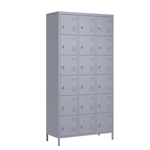 Gray 72 in. H Metal Office Storage Cabinet, Steel Locker with 18-Doors