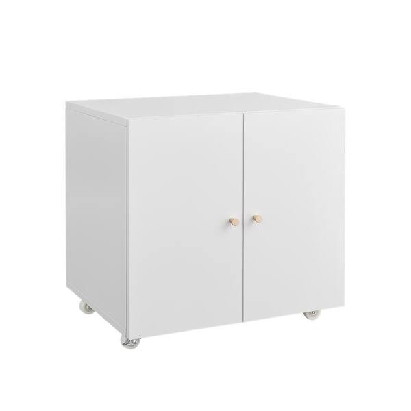 White 19.68 in. H Mobile Printer Stand with Wheels, File Door, and Open Shelf for Letter/Legal/A4 Files