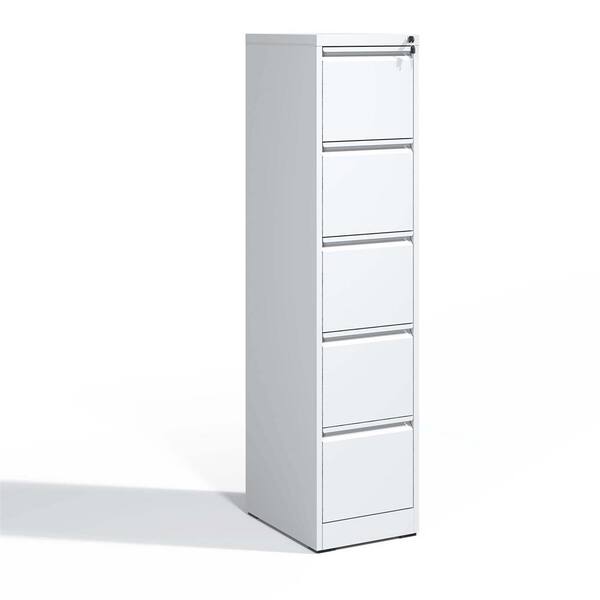 White 64 in. H Metal Office Storage Cabinet Steel Vertical File Cabinet with Lock and 5 Drawers