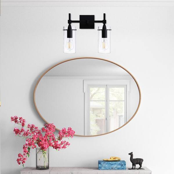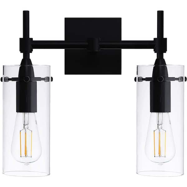 Kailan 13.6 in. 2-Light Black Vanity Light with Clear Glass Shade