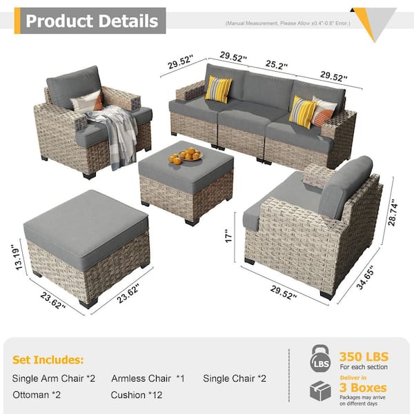 Kairos 7-Pieces Wicker Outdoor Patio Conversation Seating Set with Dark Grey Cushions
