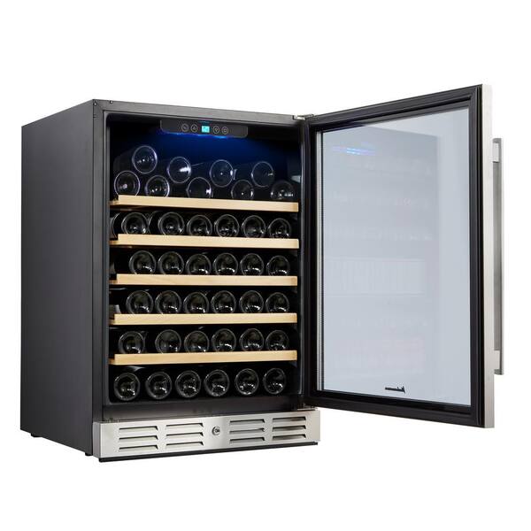 24 in. Wine Cooler 54 Bottle Single Zone Touch Control Built-in with Tempered Glass Door and Temperature Memory Function