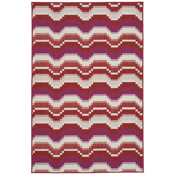 Pianta Collection Red 1'11" x 3'7" Rectangle Residential Indoor-Outdoor Throw Rug