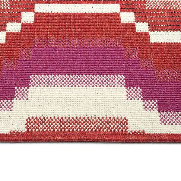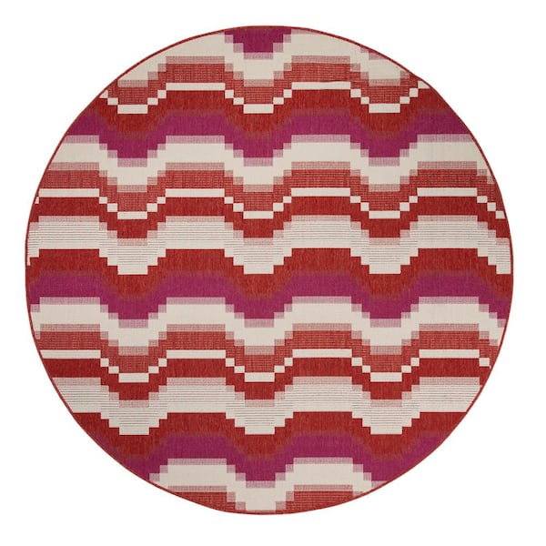 Pianta Collection Red 5'3" x 5'3" Round Residential Indoor-Outdoor Area Rug