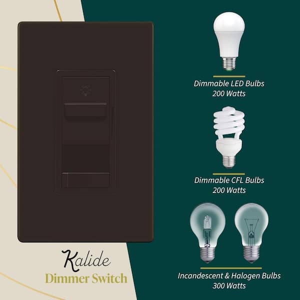 Kalide 200-Watt 3-Way Slide Dimmer Light Switch With On/Off Button, No Neutral, Brown (3-Pack)