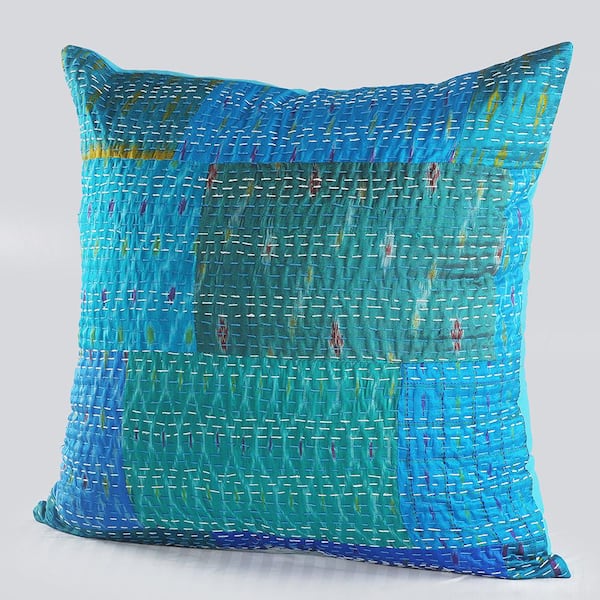 Kantha Blue Graphic Hypoallergenic Polyester 20 in. x 20 in. Throw Pillow