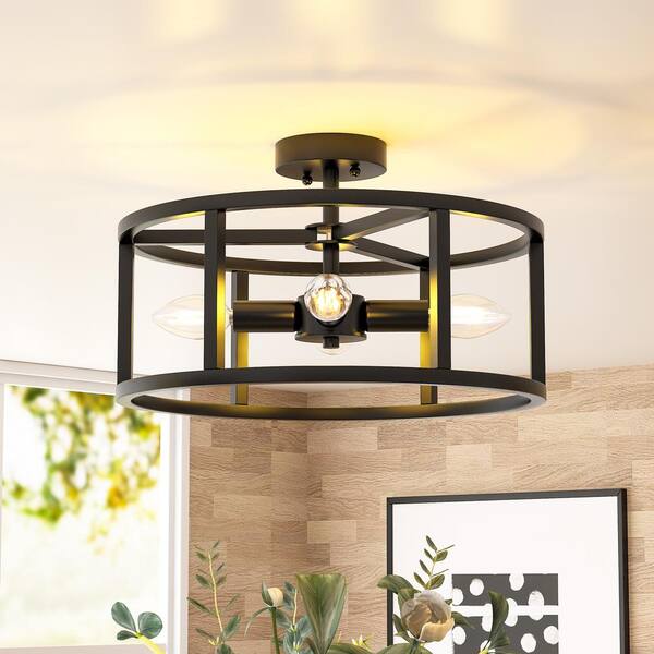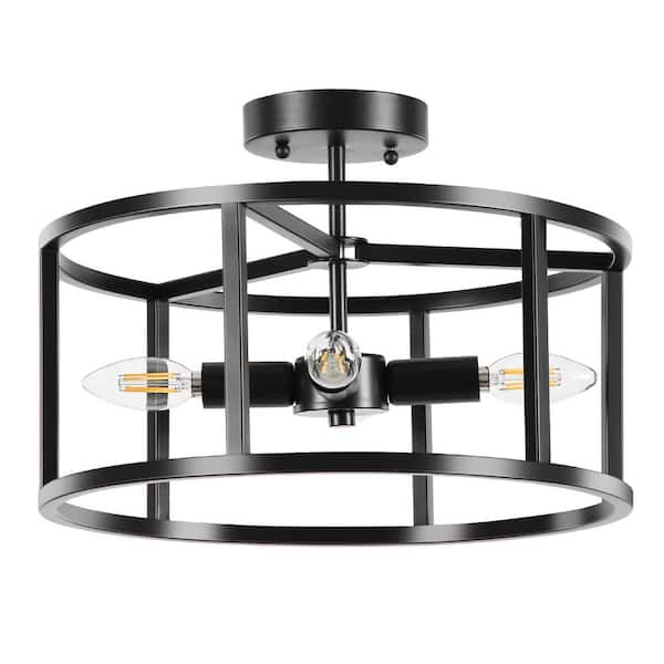 Kapnice 14.96 in. 4-Light Black Metal Flush Mount Lights with Metal Cage for Dining Room Entryway Hallway