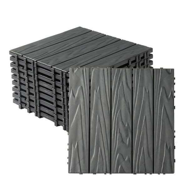1 ft. x 1 ft. Plastic Interlocking Deck Tile in Gray (27 per Case)
