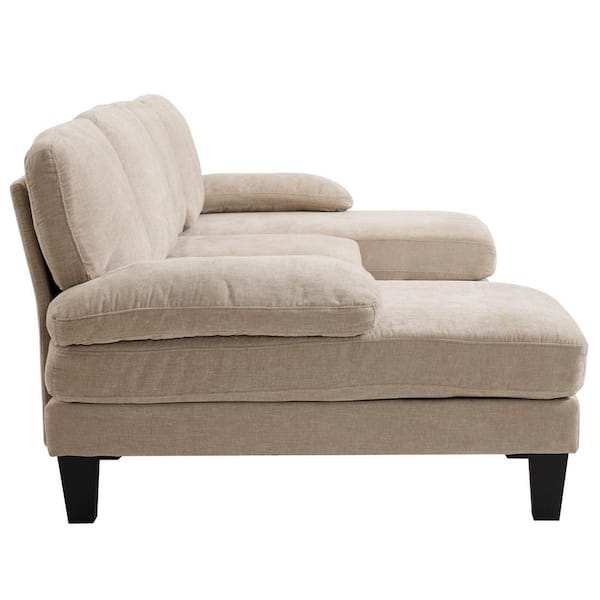 111 in. Pillow Top Arm 3-Piece U-Shaped Chenille Mordern Sectional Sofa in Brown