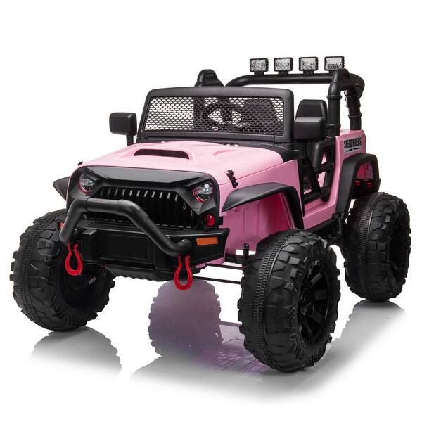 12-Volt 4-Wheels Electric Ride on Truck RC Car with LED Lights Music in Pink