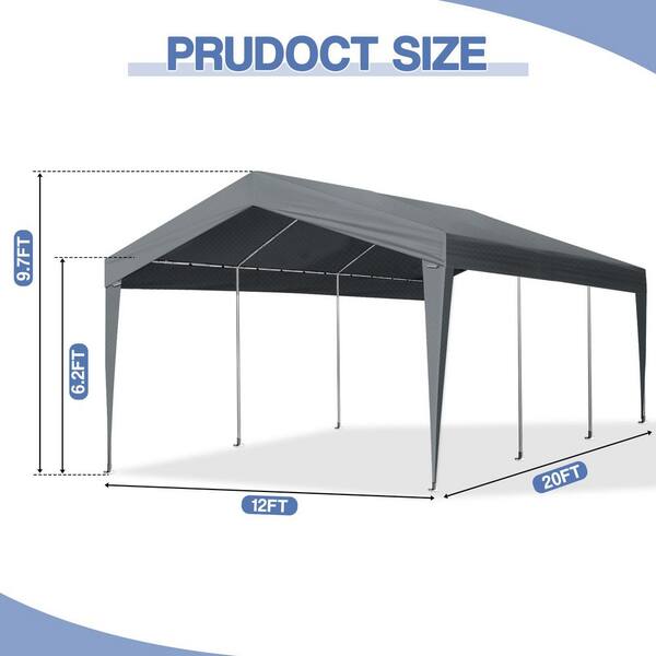 12 ft. x 20 ft. x 9.7 ft. Gray Roof Metal-Framed Carport without Walls