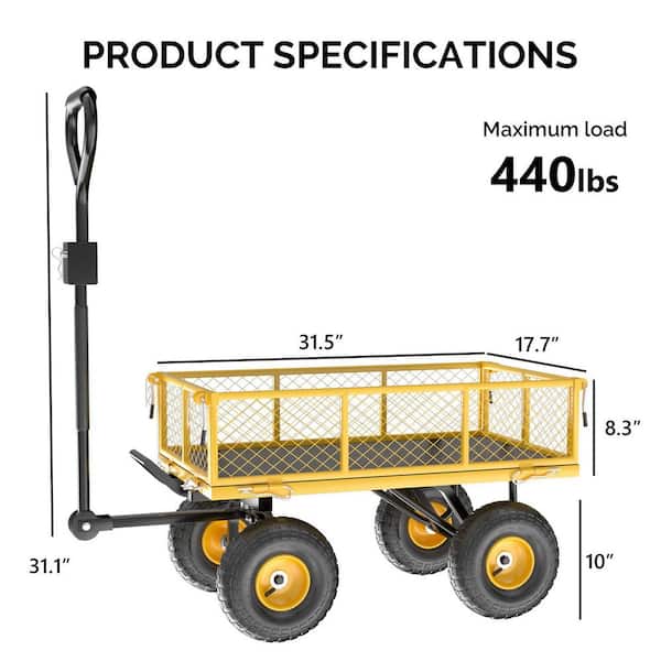 2.7 cu. ft Metal Garden Cart Heavy Duty Garden Wagon Yard Dump Wagon with Utility Liner
