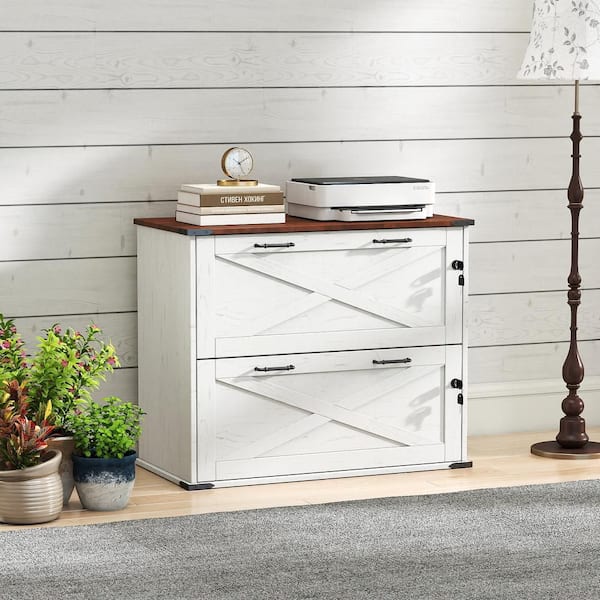 2-Drawer White Wood 31. 5 in. W Lateral File Cabinet