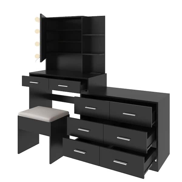 2-Piece Black Makeup Vanity Set with Combination Cabinet