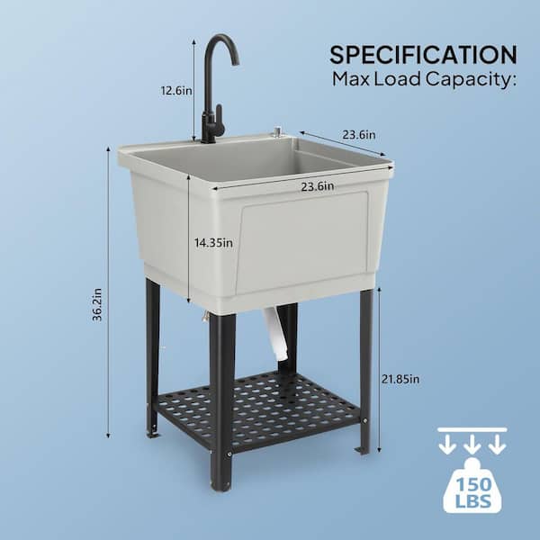 23.6 in. D x 23.6 in. W Freestanding Laundry/Utility Sink in Gray with Faucet