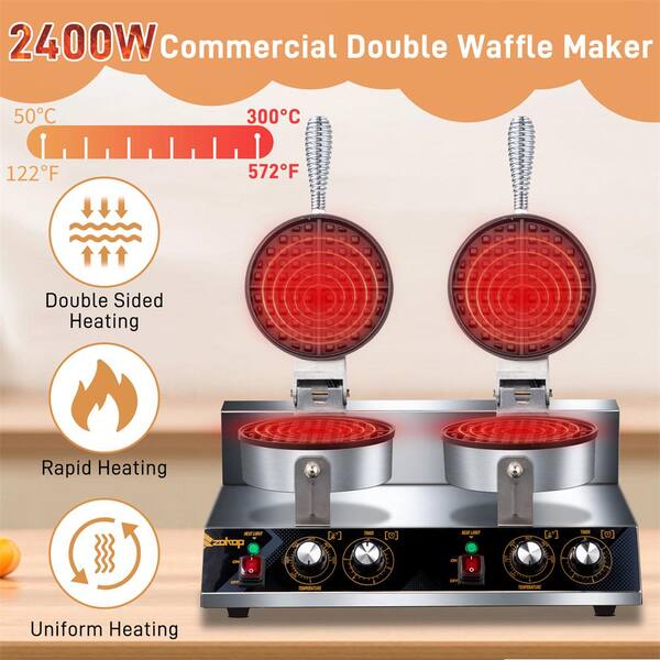 2400-Watt Double Head Stainless Steel Waffle Cone Commercial Electric Waffle Maker