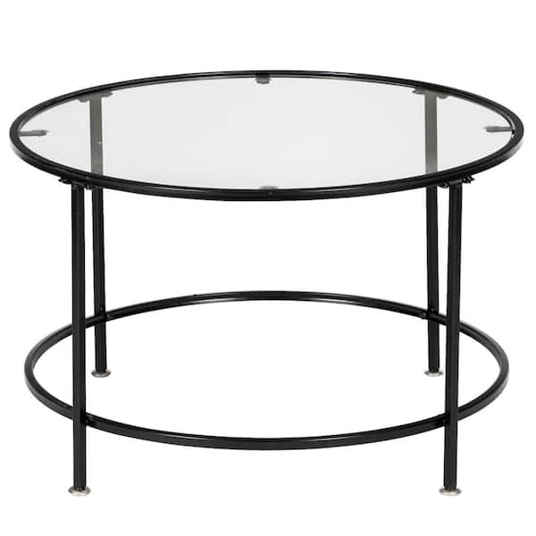 26 in. Tempered Glass Round Coffee Table Coffee Cocktail Table