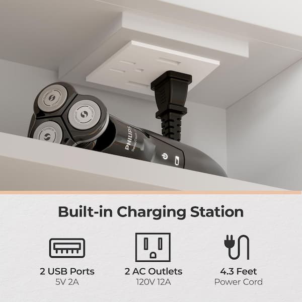 28.2 in. W x 27.6 in. H Framed Rectangular Wall Bathroom Vanity Mirror in Brushed with Glass Door and 2-plug 2-USB Port