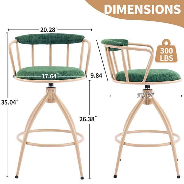 2pcs Green Rough Sisal Cushion Khaki Sprayed Plastic Iron Feet with Swivel Bar Stool