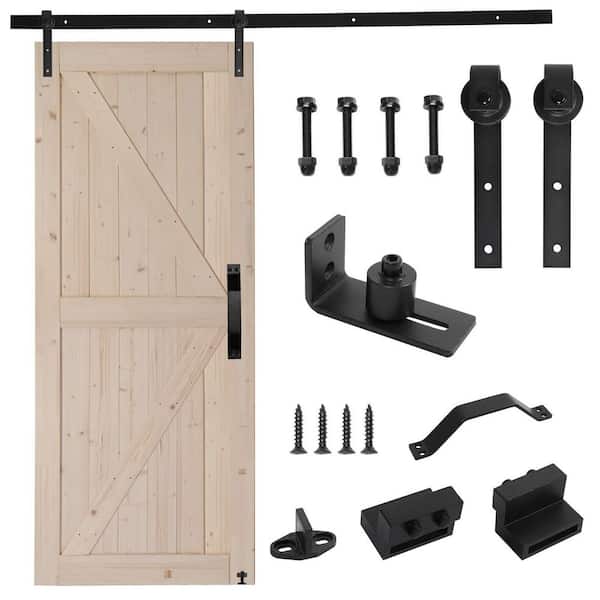 30 in. x 84 in. Unfinished Wood Sliding Barn Door with Hardware Kit