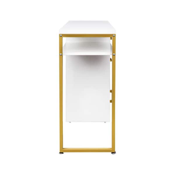 37.8 in. Rectangular White 2-Drawer Computer Desk with Storage and Keyboard Tray
