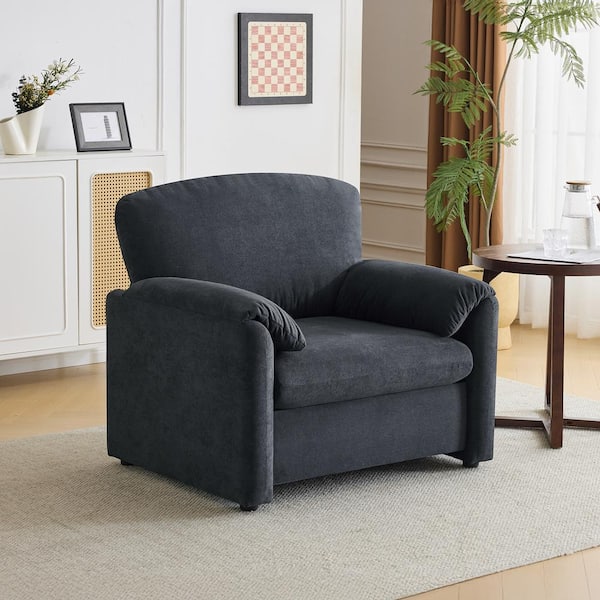 38.2 in. Flared Arm Chenille Square Single Sofa in Dark Gray