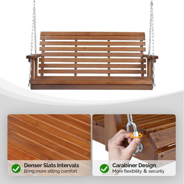 4.5 ft. Brown Wood Patio Swing Upgraded Seat Depth and Back Height