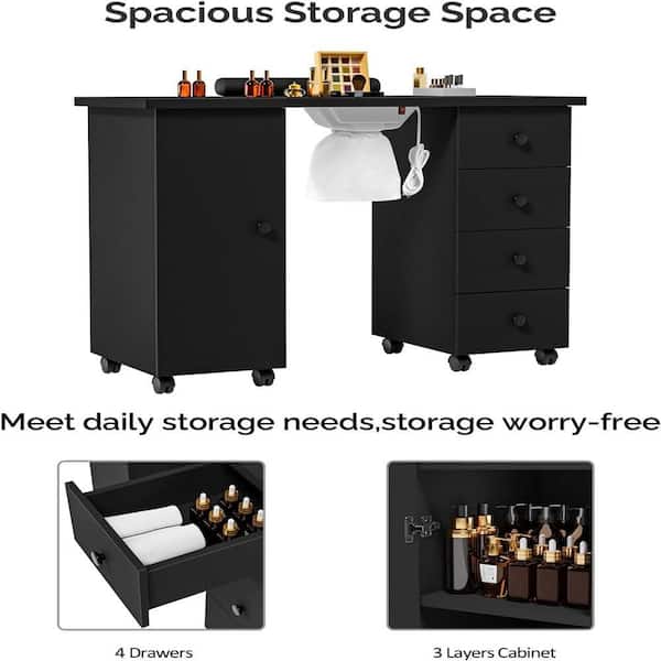 42.5 in. Rectangular Black MDF 4-Drawer Manicure Table Nail Desk with Cabinet, Doors, Electric Dust Collector