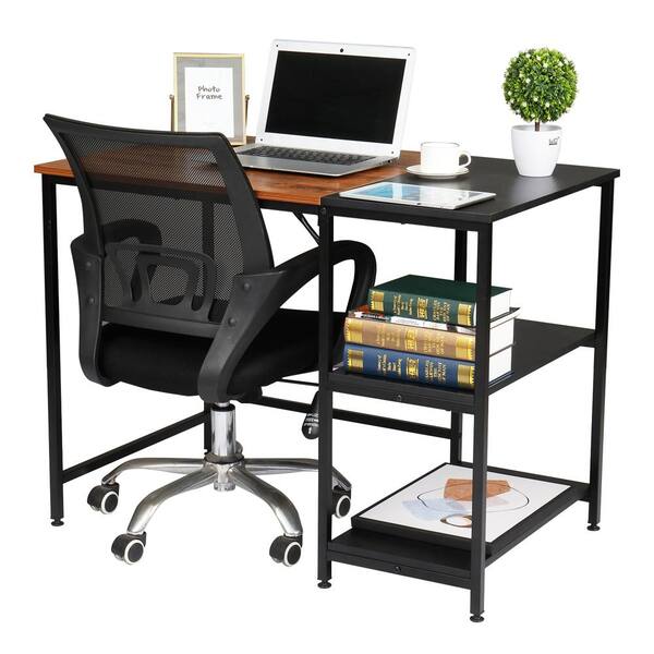 47.2 in. W Retangular Retro & Black Color Computer Desk Writing Desk with 2 Shelves