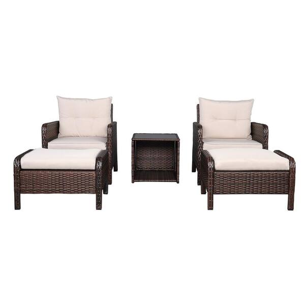 5-Piece Wicker Patio Conversation Set with Beige Cushions