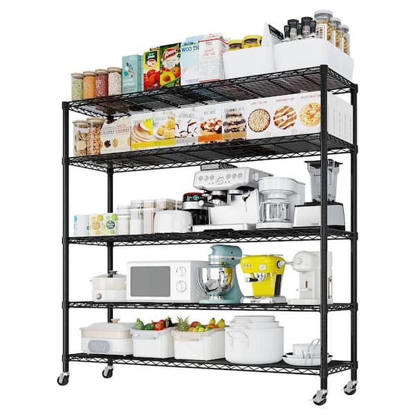 5-Tiers Steel Adjustable Garage Storage Shelving Unit in Black with Wheels (59.02 in. W x 74.02 in. H x 17.72 in. D)