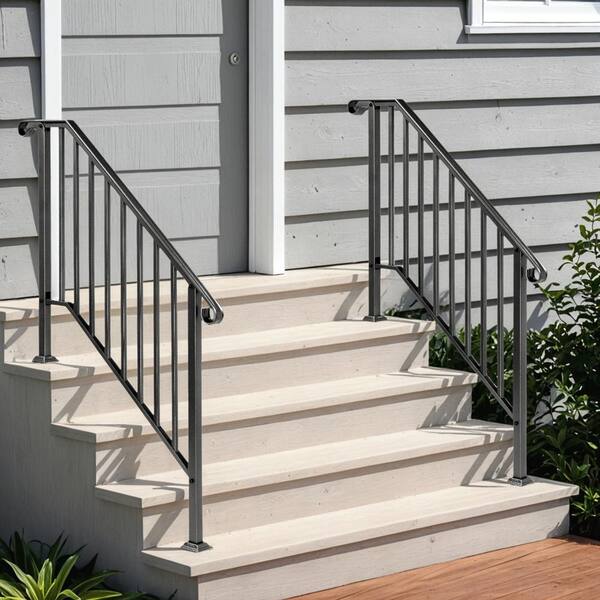 51.2 in. Transitional Stair Railing Fits 4-Step Iron Handrail Rail Kit in Silver