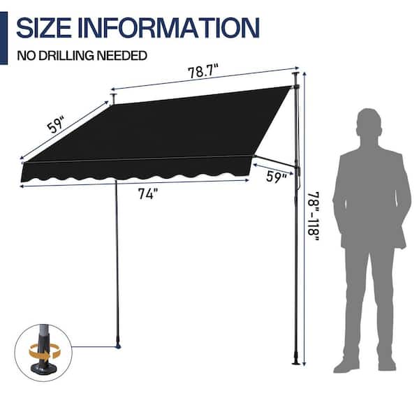 6.5 ft. Metal Manual Patio Retractable Awning (59 in. Projection) in Black