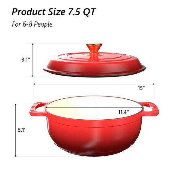 7.5 qt. Enameled Cast Iron Round Dutch Oven in Red with Lid
