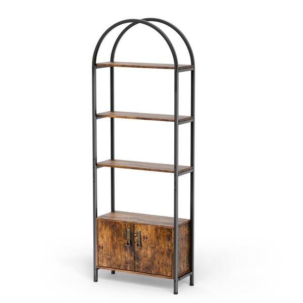 70.08 in. Tall Brown 3-Shelf Ladder Bookcase with Storage