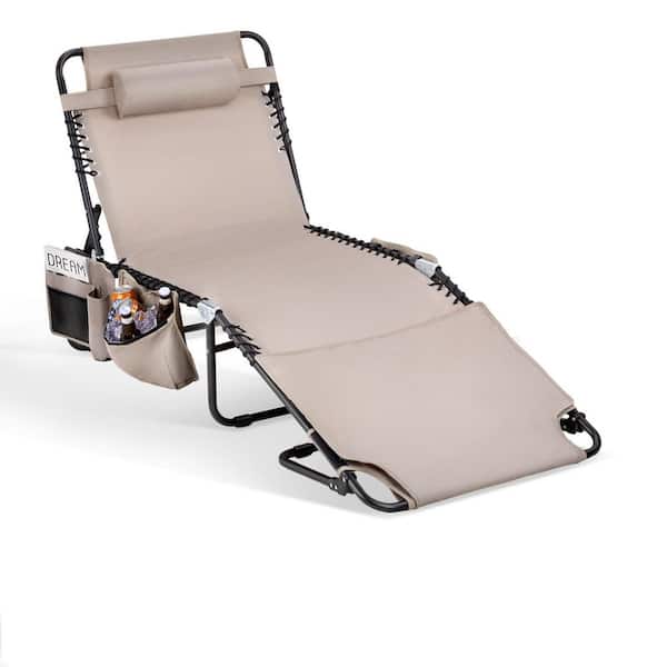 Beige Folding Outdoor Lounge Chaise Patio Lounge Chaise