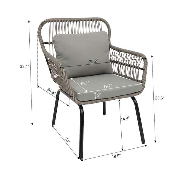 Black Frame 3-Piece Wicker Patio Conversation Set with Grey Cushions