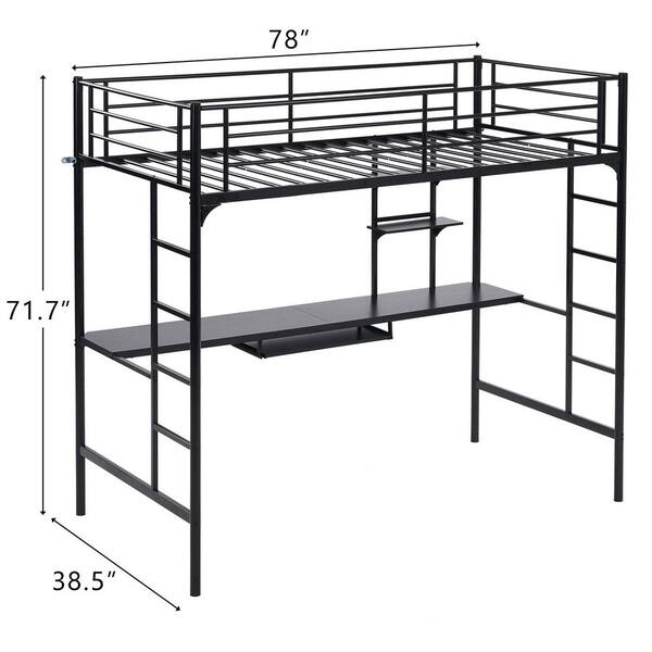 Black Loft Bed Twin Size with Table Shelf Elevated Bed Iron Bed Black