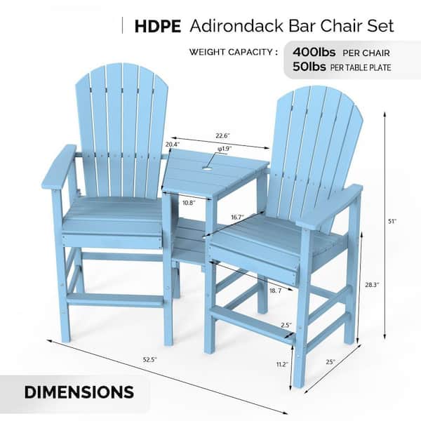 Blue HDPE Plastic Outdoor Bar Stool with Removable Trays (2-Pack)