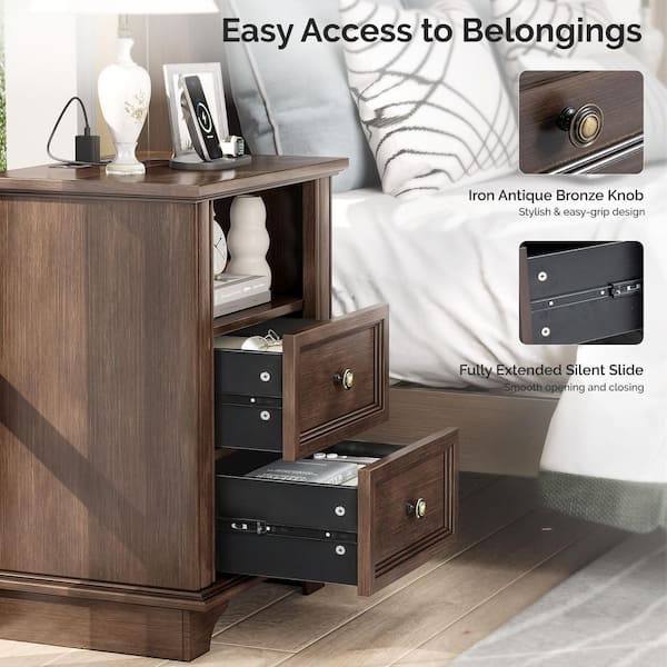 Brown 2 Drawer 19. 69 in. Wide Nightstand