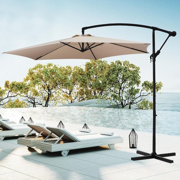 Folding Banana 10 ft. Market Patio Umbrella in Top Color Beige
