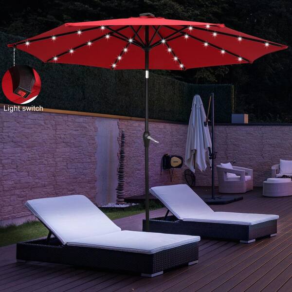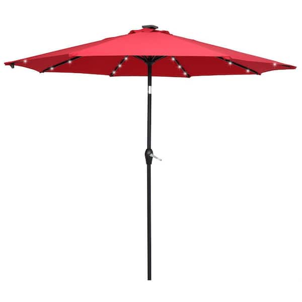 Folding Light 9 ft. Market Tilt Patio Umbrella in Wine Red Color Red