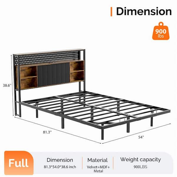 Full Size Floating Bed Frame Metal Bed Frame with LED Lights and Charging Station, Velvet Upholstered Headboard