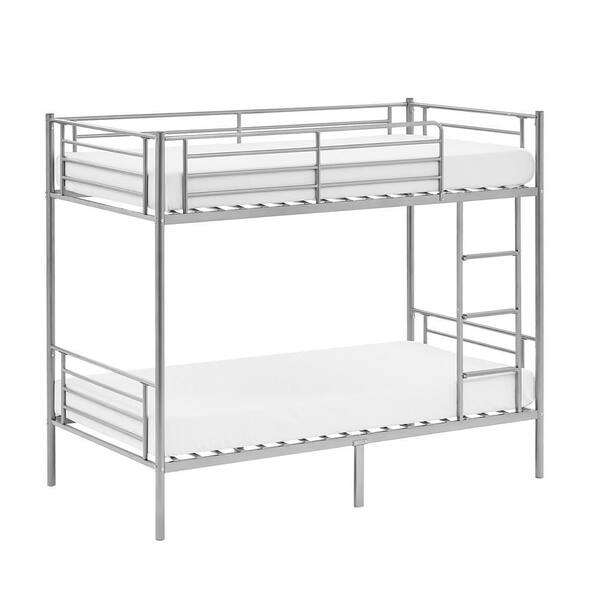 Gray Twin Over Twin Bunk Bed for Kids/Adults with Stairs Flat Rungs